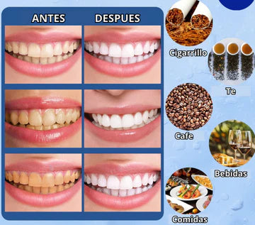2️⃣ Elimina manchas difíciles ☕ Café, tabaco, vino y más ¡adiós a los dientes amarillos!