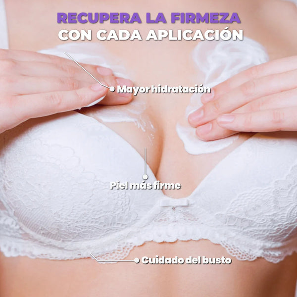 Piel Más Firme y Tonificada 💪 Combate la flacidez y mejora la elasticidad para un busto rejuvenecido.
