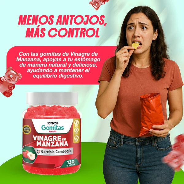 Estas deliciosas gomitas de vinagre de manzana están formuladas con ingredientes naturales que ayudan a controlar el apetito, mejorar la digestión y apoyar tu metabolismo, ¡todo con un sabor increíble y sin acidez! 😋🍎