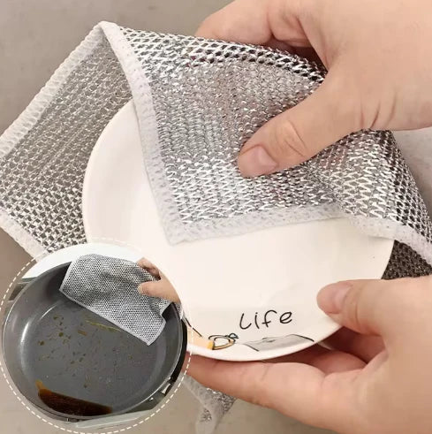 🌟Nuestro paño de cocina de alambre multifuncional de doble capa es la herramienta que necesitas 🧽Fabricado con material de nylon y microfibra, es perfecto para limpiar eficazmente platos, ollas, sartenes, encimeras y placas de cocina sin dejar arañazos🧼 ¡Descubre cómo la limpieza puede ser fácil y rápida!