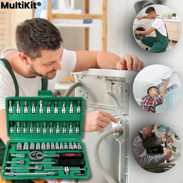 Nunca más te quedarás sin la herramienta adecuada. Con este Kit de 46 Piezas, podrás arreglar, ajustar y reparar cualquier cosa en tu casa, carro o trabajo sin depender de nadie.