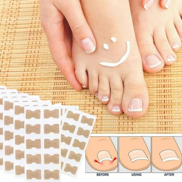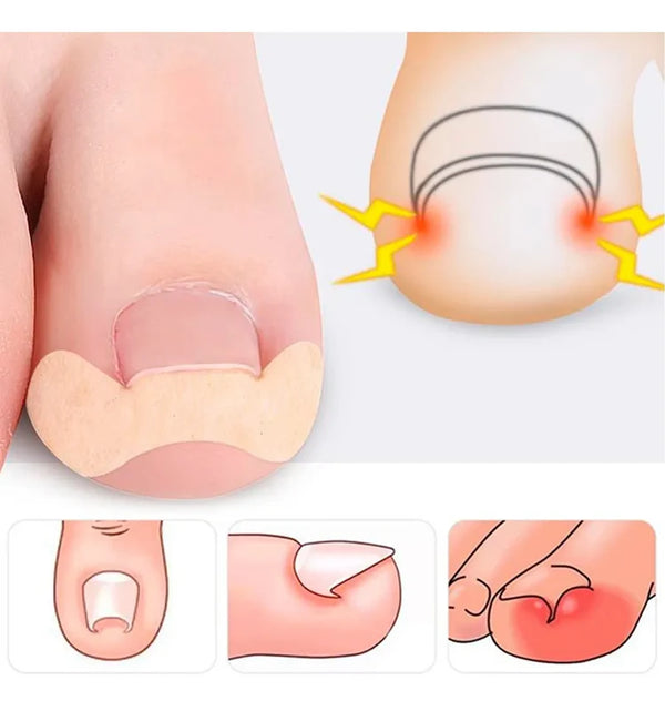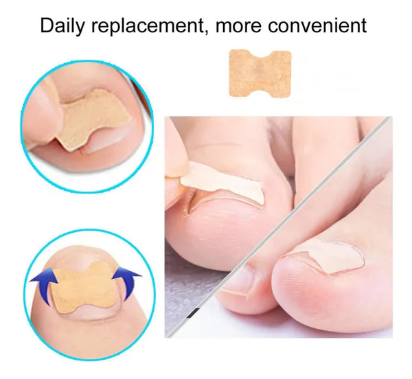 El parche se adhiere fácilmente a los bordes de la uña y levanta suavemente los laterales, ayudando a que la uña crezca de forma recta, sin clavarse en la piel.